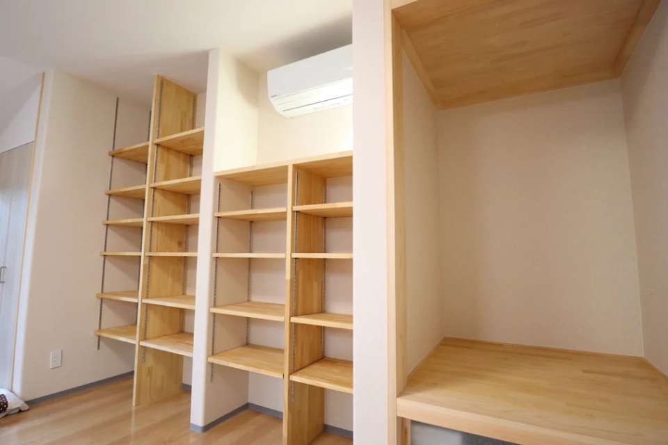 - 大容量のファミリークローゼット。